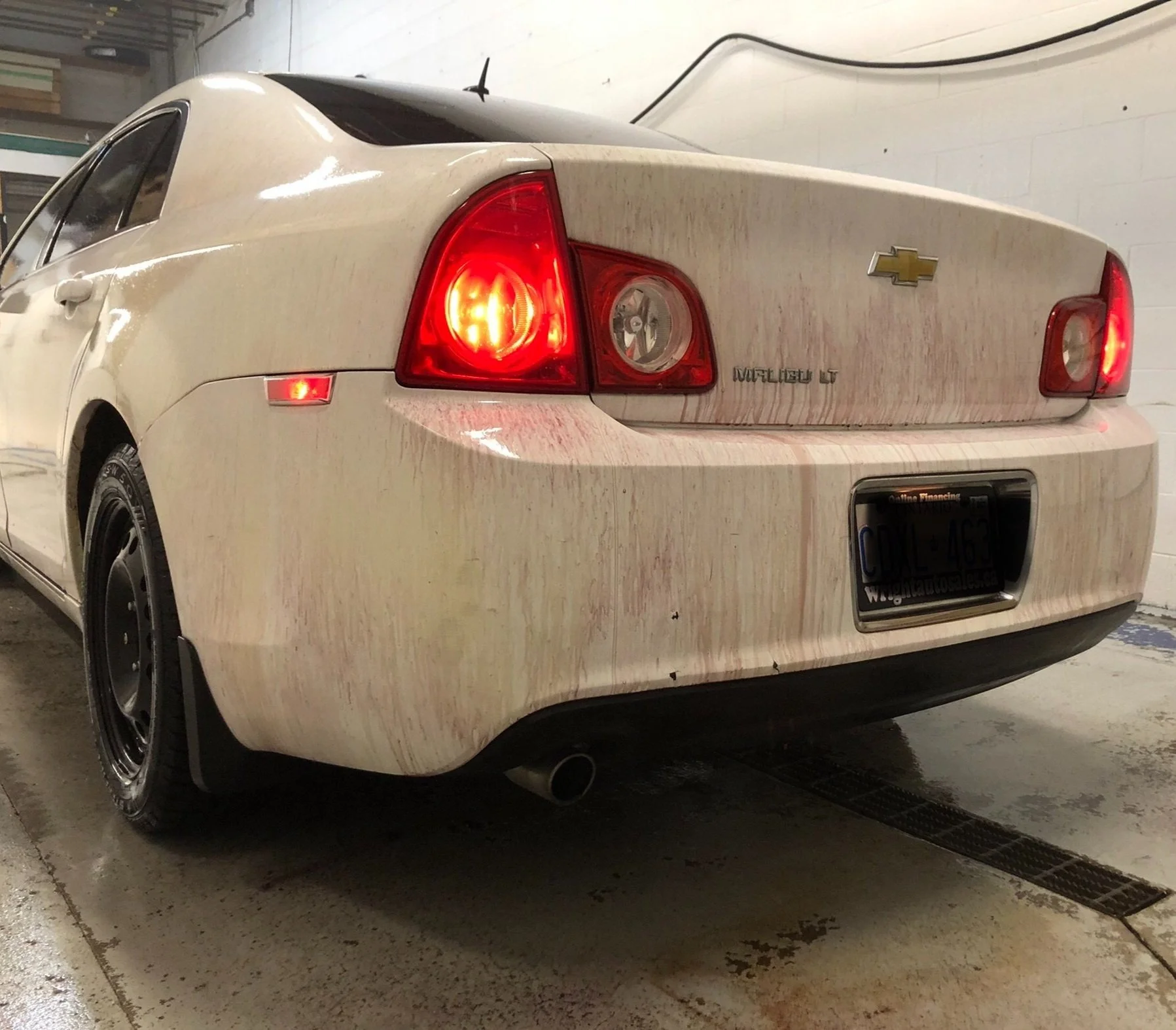 The exterior is carefully washed and decontaminated to remove road grime, iron particles, tar, and other bonded contaminants that dull the finish.